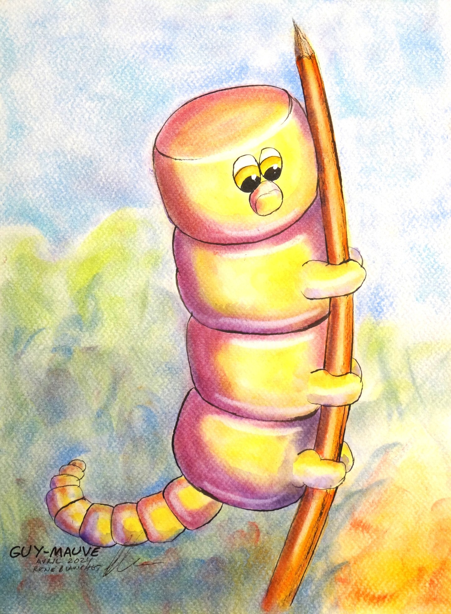 9’’ x 12’’ (22,9 x 30,5) traits à l'encre acrylique et couleurs au PanPastel sur papier aquarelle